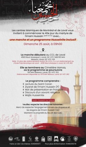 In Shia Islam, Arba'in occurs forty days after Ashura, commemorating the martyrdom of Hossein ibn Ali, the grandson of the Islamic prophet Mohammad and the third Shia Imam.
